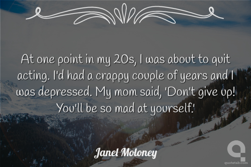 At one point in my 20s, I was about to quit acting. I'd had a crappy couple of years and I was depressed. My mom said, 'Don't give up! You'll be so mad at yourself.'