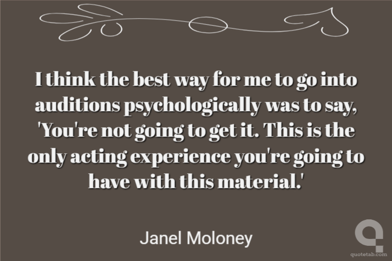 I think the best way for me to go into auditions psychologically was to say, 'You're not going to get it. This is the only acting experience you're going to have with this material.'