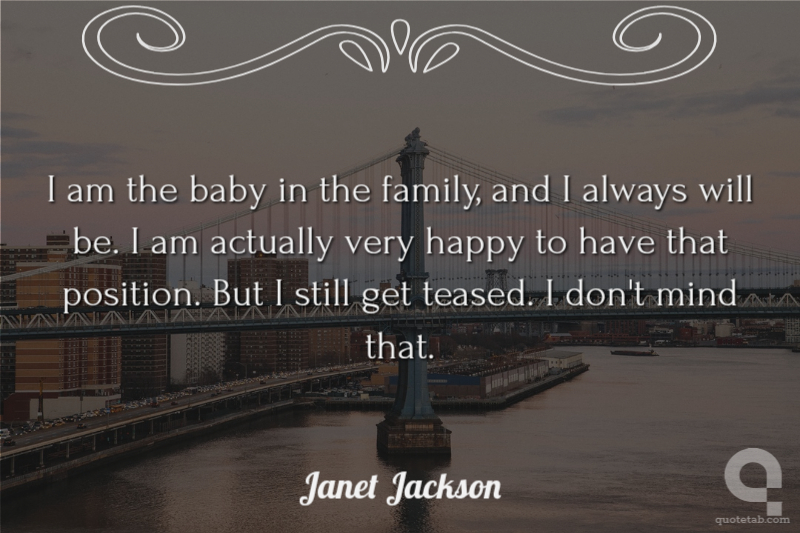 I am the baby in the family, and I always will be. I am actually very happy to have that position. But I still get teased. I don't mind that.