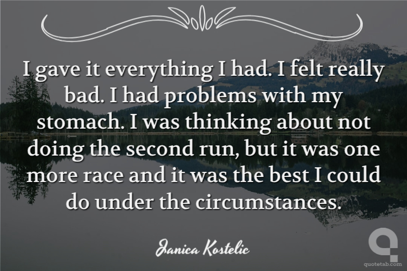 I gave it everything I had. I felt really bad. I had problems with my stomach. I was thinking about not doing the second run, but it was one more race and it was the best I could do under the circumstances.
