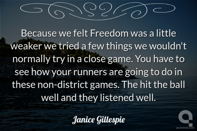 Because we felt Freedom was a little weaker we tried a few things we wouldn't normally try in a close game. You have to see how your runners are going to do in these non-district games. The hit the ball well and they listened well.