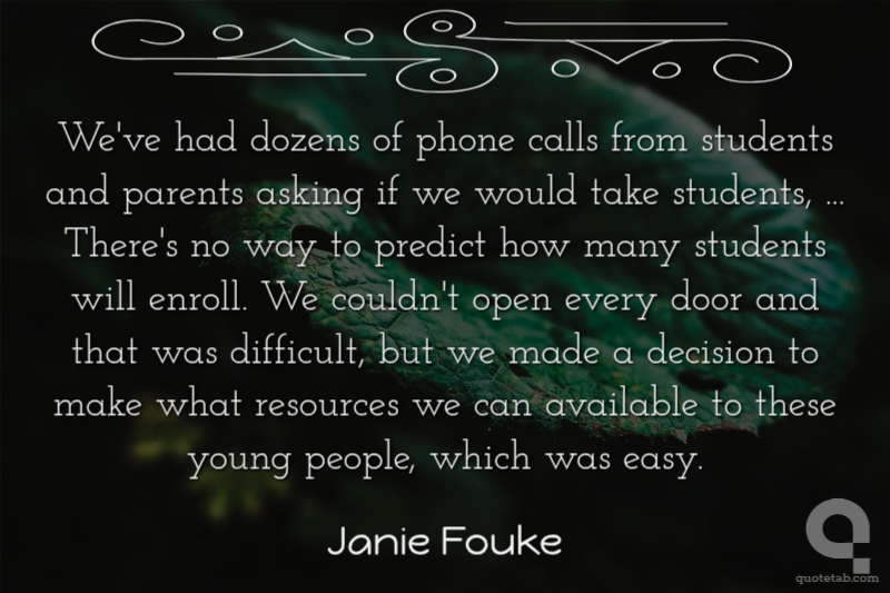 We've had dozens of phone calls from students and parents asking if we would take students, ... There's no way to predict how many students will enroll. We couldn't open every door and that was difficult, but we made a decision to make what resources we can available to these young people, which was easy.