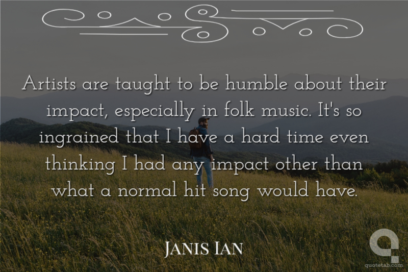 Artists are taught to be humble about their impact, especially in folk music. It's so ingrained that I have a hard time even thinking I had any impact other than what a normal hit song would have.
