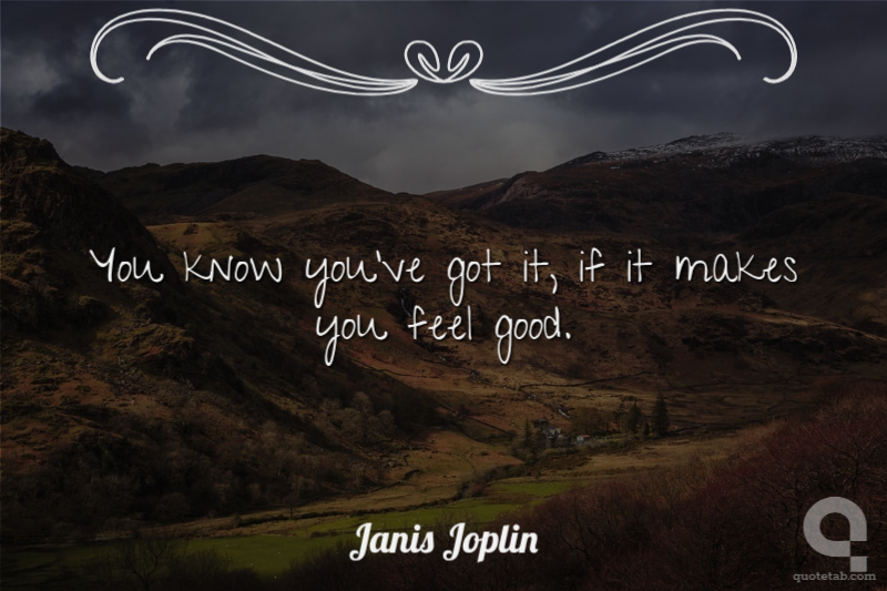 I gotta go on doin' it the way I see it...I got no choice but to take it like I see it. I'm here to have a party while I'm on this earth...I'm gettin' it now, today. I don't even know where I'm gonna be twenty years from now, so I'm just gonna keep on rockin', cause if I start saving up bits and pieces of me...man, there ain't gonna be nothing left for Janis.