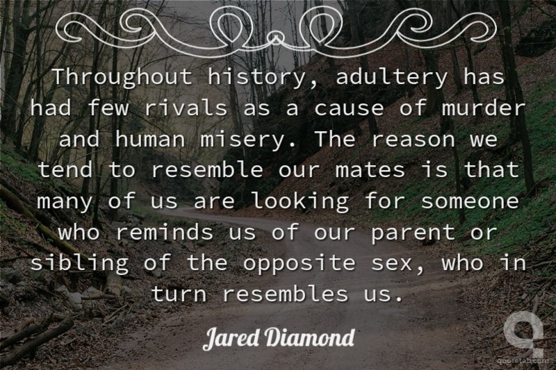 Throughout history, adultery has had few rivals as a cause of murder and human misery. The reason we tend to resemble our mates is that many of us are looking for someone who reminds us of our parent or sibling of the opposite sex, who in turn resembles us.