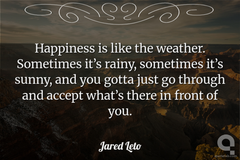 Happiness is like the weather. Sometimes it’s rainy, sometimes it’s sunny, and you gotta just go through and accept what’s there in front of you.