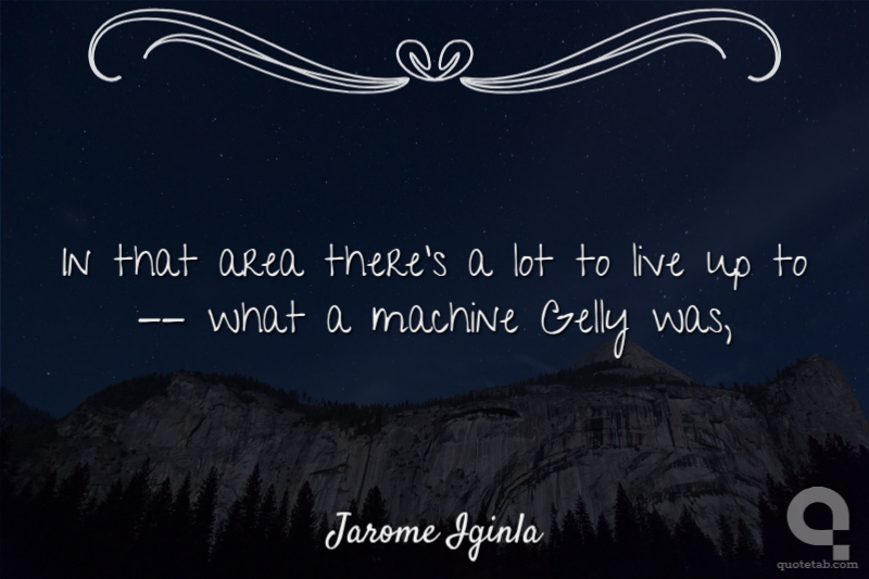 In that area there's a lot to live up to -- what a machine Gelly was,