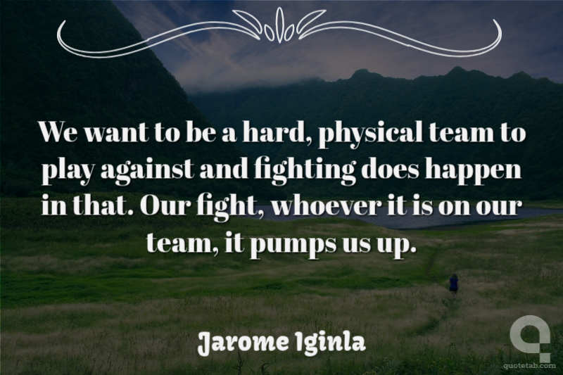 We want to be a hard, physical team to play against and fighting does happen in that. Our fight, whoever it is on our team, it pumps us up.