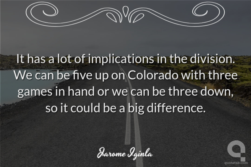 It has a lot of implications in the division. We can be five up on Colorado with three games in hand or we can be three down, so it could be a big difference.