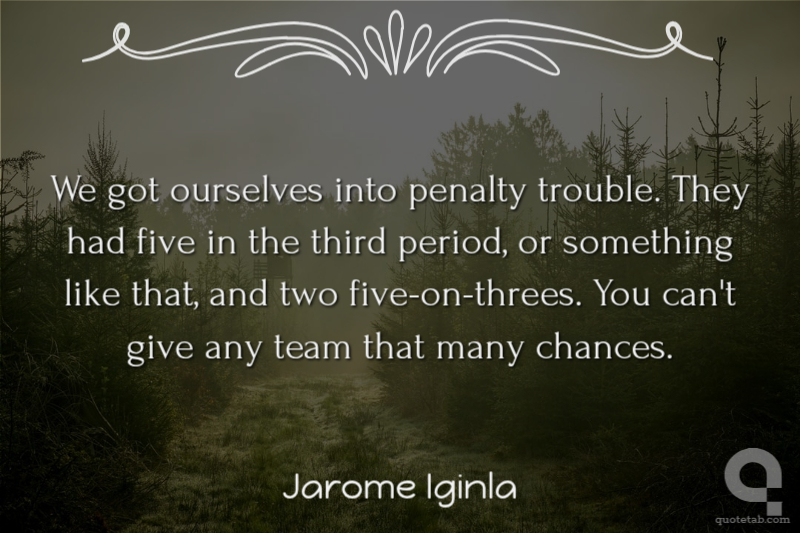We got ourselves into penalty trouble. They had five in the third period, or something like that, and two five-on-threes. You can't give any team that many chances.