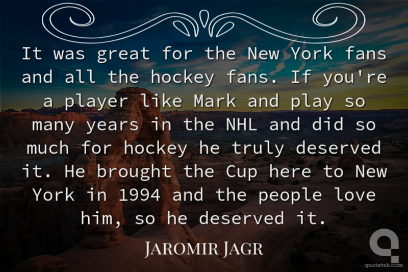 It was great for the New York fans and all the hockey fans. If you're a player like Mark and play so many years in the NHL and did so much for hockey he truly deserved it. He brought the Cup here to New York in 1994 and the people love him, so he deserved it.