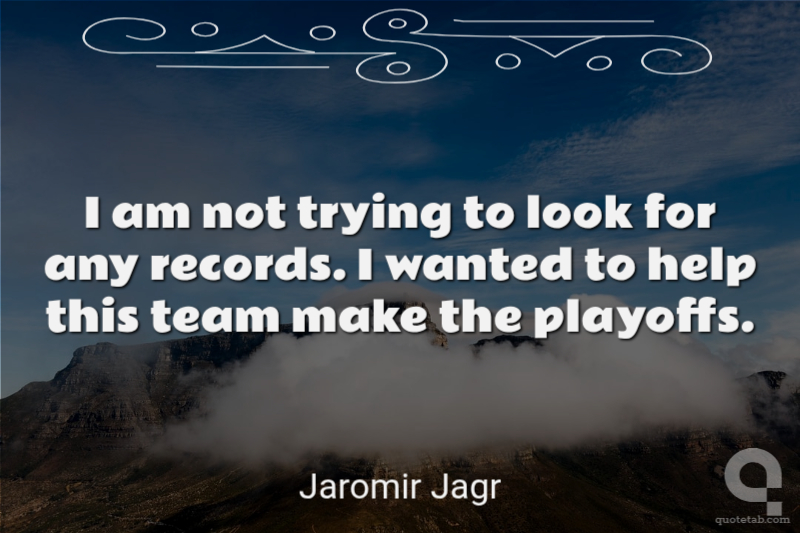 I am not trying to look for any records. I wanted to help this team make the playoffs.