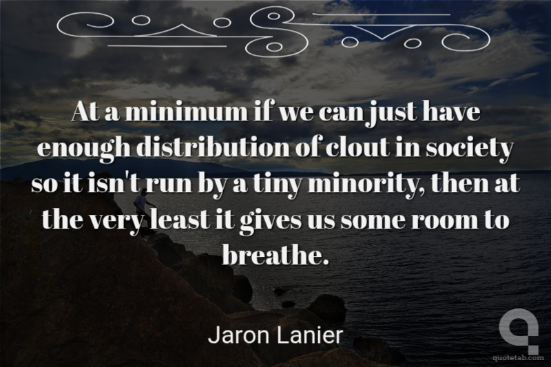 At a minimum if we can just have enough distribution of clout in society so it isn't run by a tiny minority, then at the very least it gives us some room to breathe.