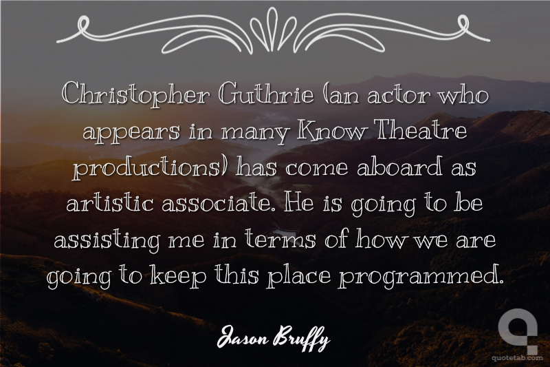 Christopher Guthrie (an actor who appears in many Know Theatre productions) has come aboard as artistic associate. He is going to be assisting me in terms of how we are going to keep this place programmed.