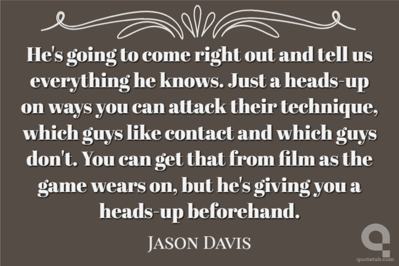 He's going to come right out and tell us everything he knows. Just a heads-up on ways you can attack their technique, which guys like contact and which guys don't. You can get that from film as the game wears on, but he's giving you a heads-up beforehand.