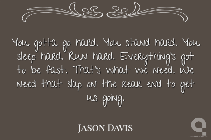 You gotta go hard. You stand hard. You sleep hard. Run hard. Everything's got to be fast. That's what we need. We need that slap on the rear end to get us going.