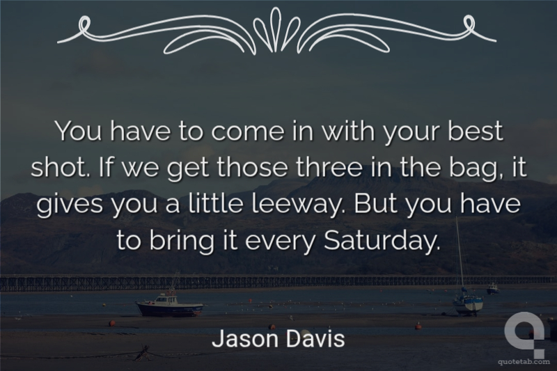 You have to come in with your best shot. If we get those three in the bag, it gives you a little leeway. But you have to bring it every Saturday.