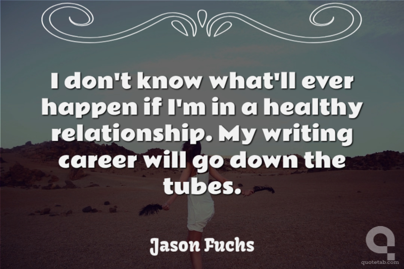 I don't know what'll ever happen if I'm in a healthy relationship. My writing career will go down the tubes.