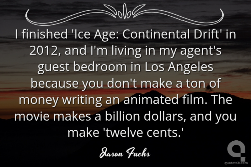 I finished 'Ice Age: Continental Drift' in 2012, and I'm living in my agent's guest bedroom in Los Angeles because you don't make a ton of money writing an animated film. The movie makes a billion dollars, and you make 'twelve cents.'