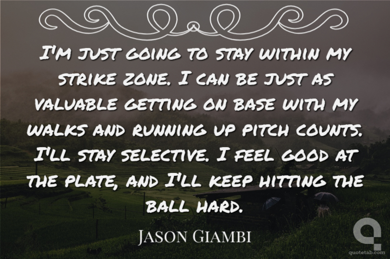 I'm just going to stay within my strike zone. I can be just as valuable getting on base with my walks and running up pitch counts. I'll stay selective. I feel good at the plate, and I'll keep hitting the ball hard.