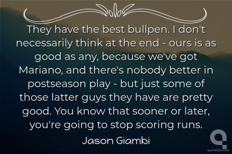 They have the best bullpen, ... I don't necessarily think at the end - ours is as good as any, because we've got Mariano, and there's nobody better in postseason play - but just some of those latter guys they have are pretty good. You know that sooner or later, you're going to stop scoring runs.