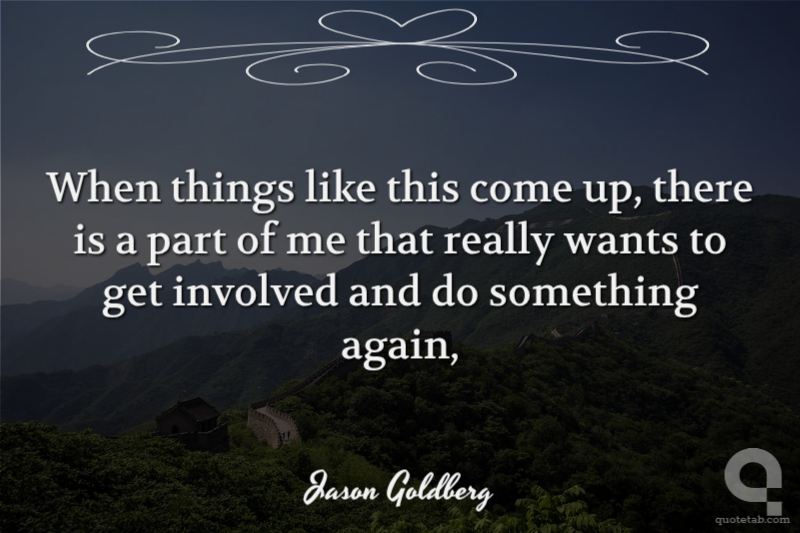 When things like this come up, there is a part of me that really wants to get involved and do something again,