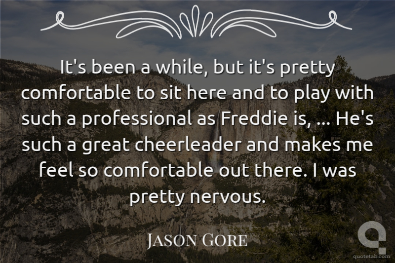 It's been a while, but it's pretty comfortable to sit here and to play with such a professional as Freddie is, ... He's such a great cheerleader and makes me feel so comfortable out there. I was pretty nervous.