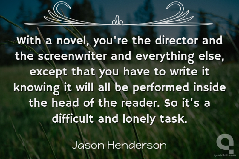 With a novel, you're the director and the screenwriter and everything else, except that you have to write it knowing it will all be performed inside the head of the reader. So it's a difficult and lonely task.