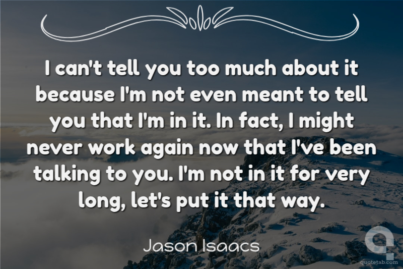 I can't tell you too much about it because I'm not even meant to tell you that I'm in it. In fact, I might never work again now that I've been talking to you. I'm not in it for very long, let's put it that way.