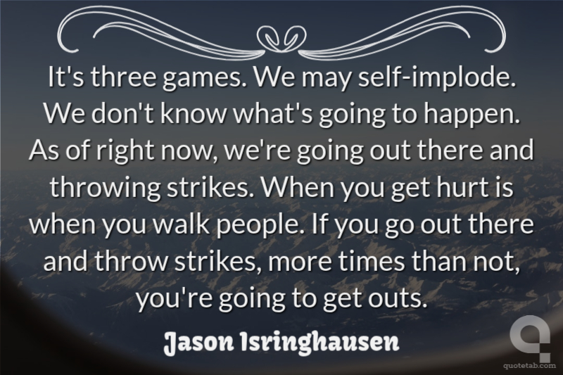 It's three games. We may self-implode. We don't know what's going to happen. As of right now, we're going out there and throwing strikes. When you get hurt is when you walk people. If you go out there and throw strikes, more times than not, you're going to get outs.