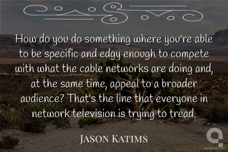 How do you do something where you're able to be specific and edgy enough to compete with what the cable networks are doing and, at the same time, appeal to a broader audience? That's the line that everyone in network television is trying to tread.