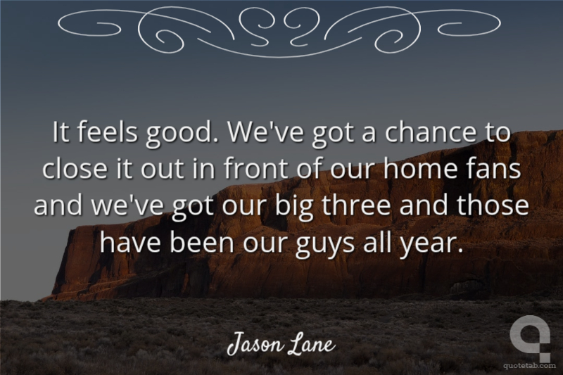 It feels good. We've got a chance to close it out in front of our home fans and we've got our big three and those have been our guys all year.