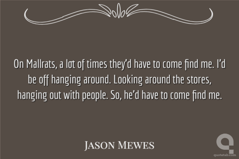 On Mallrats, a lot of times they'd have to come find me. I'd be off hanging around. Looking around the stores, hanging out with people. So, he'd have to come find me.