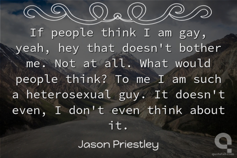 If people think I am gay, yeah, hey that doesn't bother me. Not at all. What would people think? To me I am such a heterosexual guy. It doesn't even, I don't even think about it.