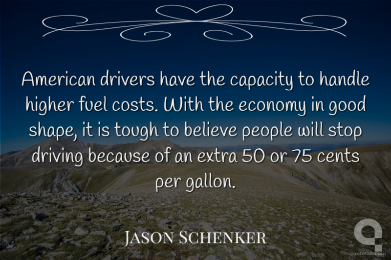 American drivers have the capacity to handle higher fuel costs. With the economy in good shape, it is tough to believe people will stop driving because of an extra 50 or 75 cents per gallon.