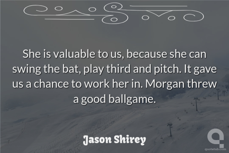 She is valuable to us, because she can swing the bat, play third and pitch. It gave us a chance to work her in. Morgan threw a good ballgame.