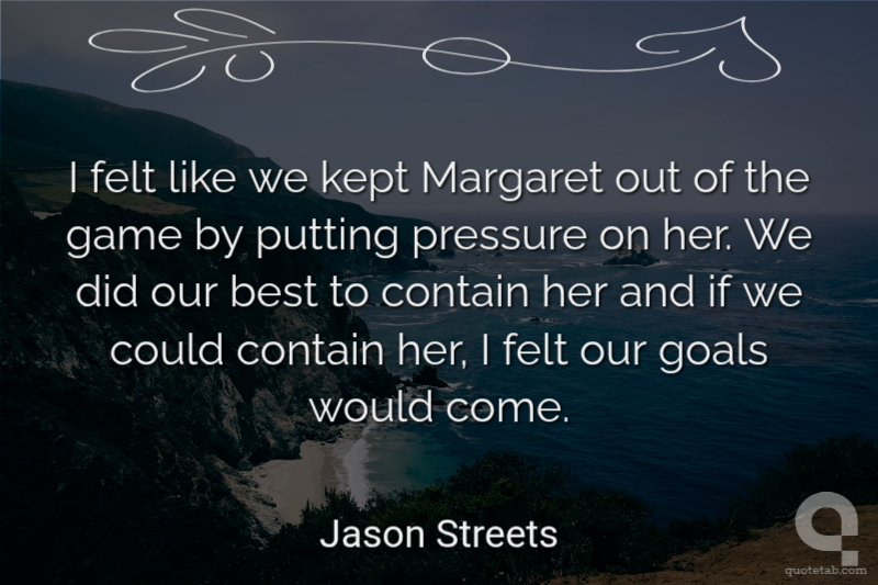 I felt like we kept Margaret out of the game by putting pressure on her. We did our best to contain her and if we could contain her, I felt our goals would come.
