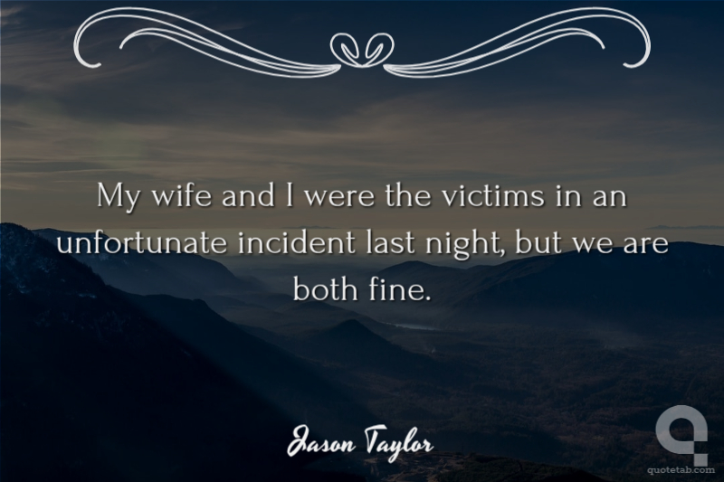 My wife and I were the victims in an unfortunate incident last night, but we are both fine.