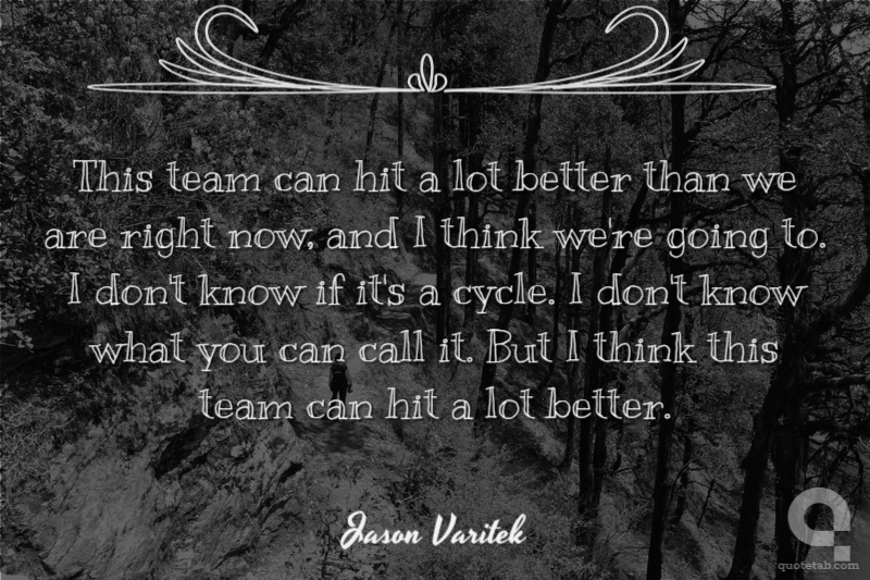 This team can hit a lot better than we are right now, and I think we're going to. I don't know if it's a cycle. I don't know what you can call it. But I think this team can hit a lot better.