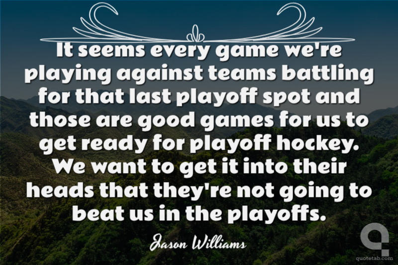 It seems every game we're playing against teams battling for that last playoff spot and those are good games for us to get ready for playoff hockey. We want to get it into their heads that they're not going to beat us in the playoffs.