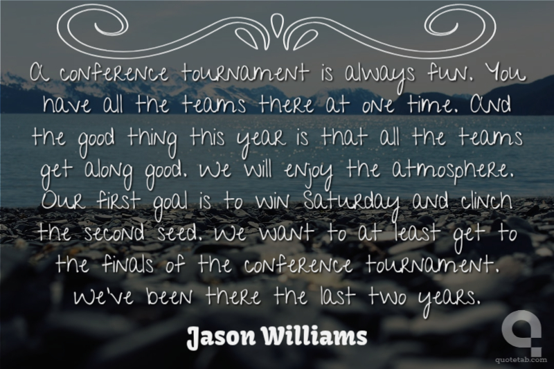 A conference tournament is always fun. You have all the teams there at one time. And the good thing this year is that all the teams get along good. We will enjoy the atmosphere. Our first goal is to win Saturday and clinch the second seed. We want to at least get to the finals of the conference tournament. We've been there the last two years.