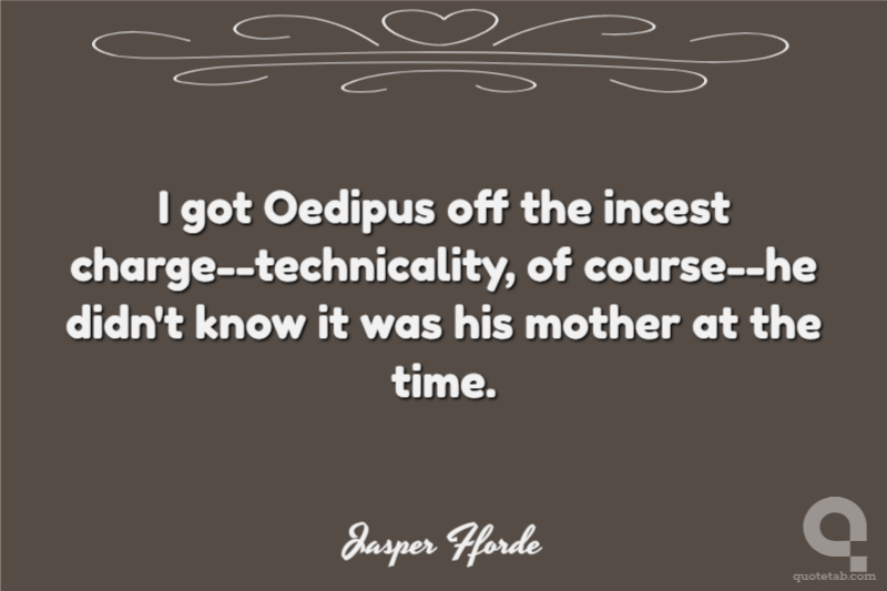 I got Oedipus off the incest charge--technicality, of course--he didn't know it was his mother at the time.