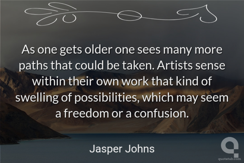 As one gets older one sees many more paths that could be taken. Artists sense within their own work that kind of swelling of possibilities, which may seem a freedom or a confusion.