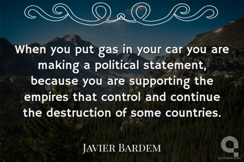 When you put gas in your car you are making a political statement, because you are supporting the empires that control and continue the destruction of some countries.