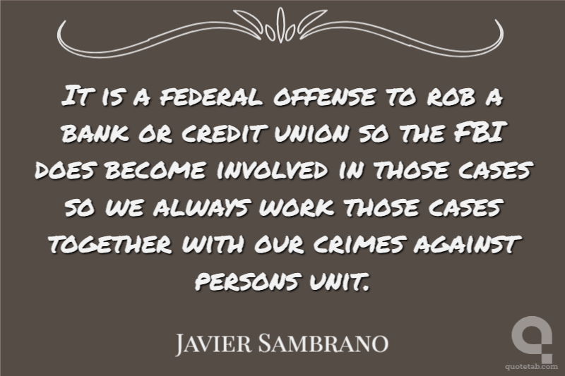 It is a federal offense to rob a bank or credit union so the FBI does become involved in those cases so we always work those cases together with our crimes against persons unit.