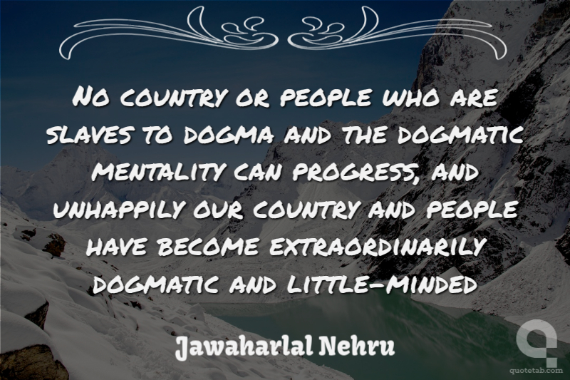 No country or people who are slaves to dogma and the dogmatic mentality can progress, and unhappily our country and people have become extraordinarily dogmatic and little-minded