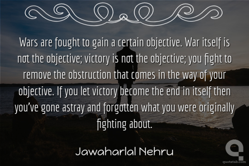Wars are fought to gain a certain objective. War itself is not the objective; victory is not the objective; you fight to remove the obstruction that comes in the way of your objective. If you let victory become the end in itself then you've gone astray and forgotten what you were originally fighting about.