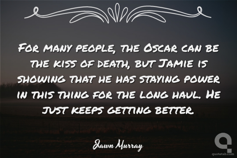 For many people, the Oscar can be the kiss of death, but Jamie is showing that he has staying power in this thing for the long haul. He just keeps getting better.