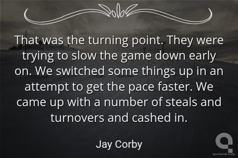 That was the turning point. They were trying to slow the game down early on. We switched some things up in an attempt to get the pace faster. We came up with a number of steals and turnovers and cashed in.