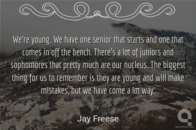 We're young. We have one senior that starts and one that comes in off the bench. There's a lot of juniors and sophomores that pretty much are our nucleus. The biggest thing for us to remember is they are young and will make mistakes, but we have come a lot way.